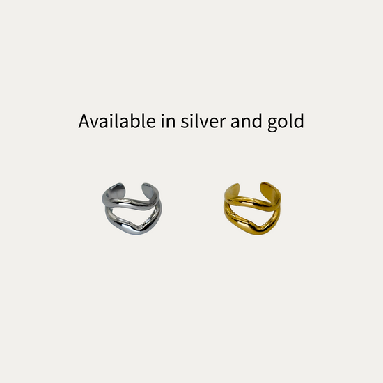 Elegant and modern, this gold wave ear cuff is part of the Marea Collection and is crafted from high-quality stainless steel for lasting shine and durability. Designed as a non-pierced, single-band cuff, it features a C-shaped silhouette that hugs the cartilage comfortably—no piercing required. Its feminine, minimalist style makes it perfect for everyday wear, and its waterproof design ensures it can keep up with your lifestyle.