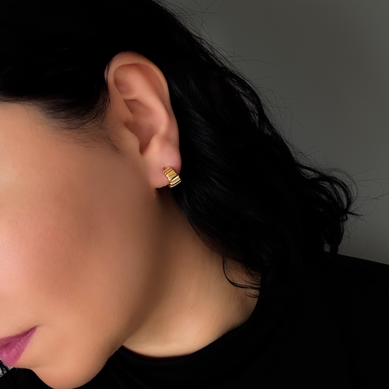 Looking for the perfect go-with-everything earrings? These Mini Ripple C-Shape Hoops are your new go-to. Crafted from stainless steel with a tarnish-free gold finish, they’re as low-maintenance as your dream relationship. Minimalist, tiny, and effortlessly chic, they’re perfect for daily wear—because who has time to switch earrings every morning?