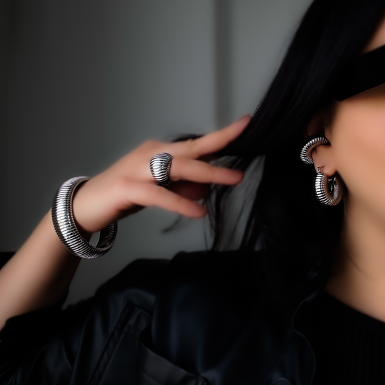 She’s bold. She’s sculpted. She does not whisper. This silver ribbed ring is crafted from durable stainless steel and designed to make your hand the main character. The chunky dome silhouette with its ridged texture gives vintage glam meets modern edge, aka the perfect everyday power move. Wear it solo for that effortless “old money” feel or stack it if you’re feeling dramatic. It’s tarnish-resistant, waterproof, durable, and made to keep up with your daily slay with minimal effort. Maximum impact.